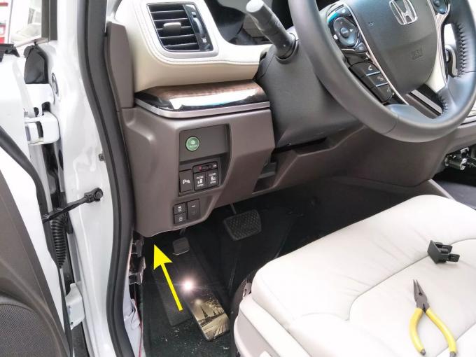 11. मुख्य चालक के ट्रिम पैनल को हटाएं और मूल कार की सफेद सॉकेट पाएं