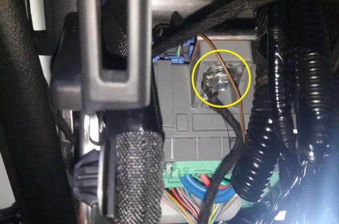 16. पिछली ड्राइविंग स्थिति के बाएं पैर पर कवर निकालें और केंद्रीय नियंत्रण रेखा का पता लगाएं
